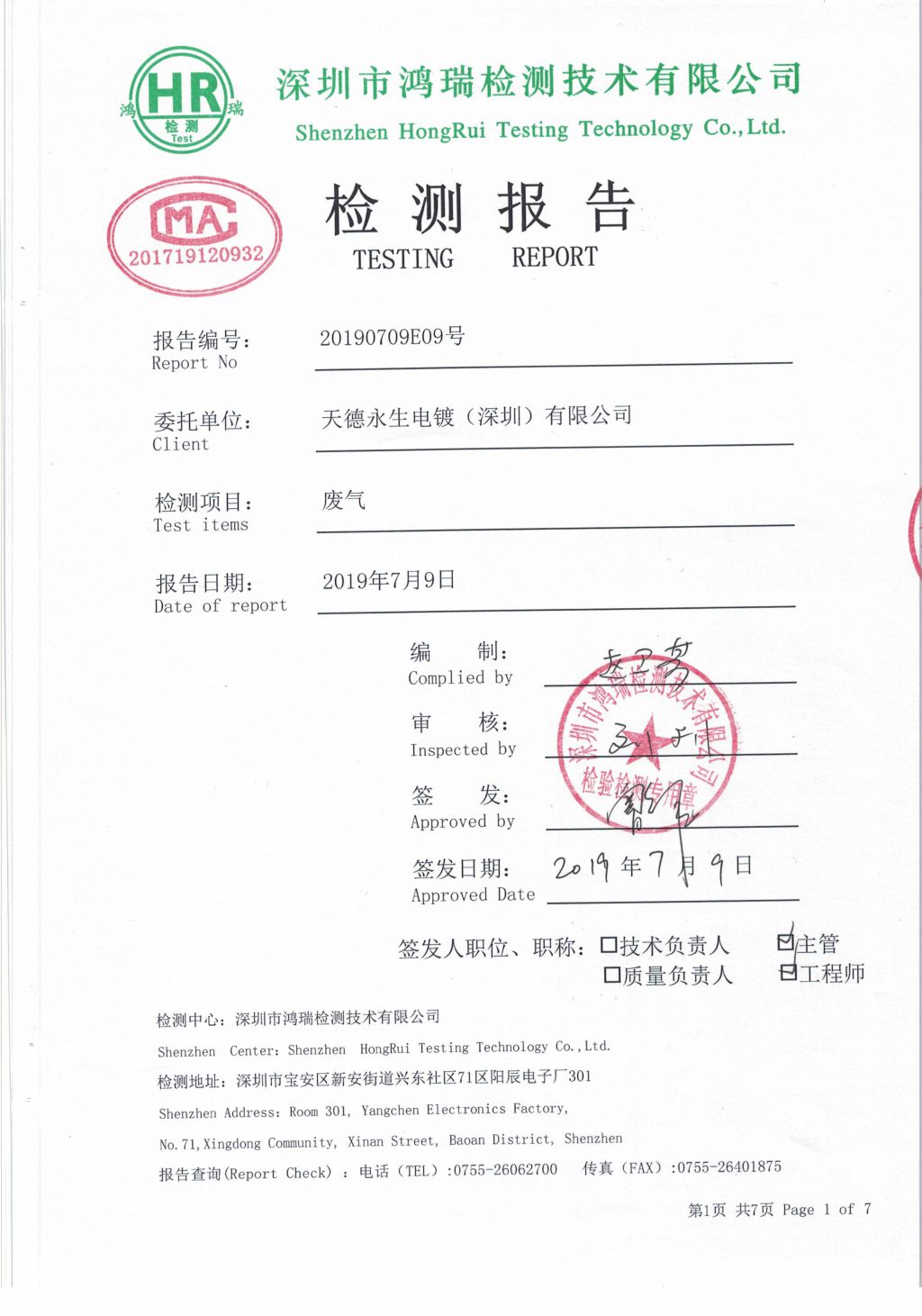 天德永生电镀(深圳)有限公司