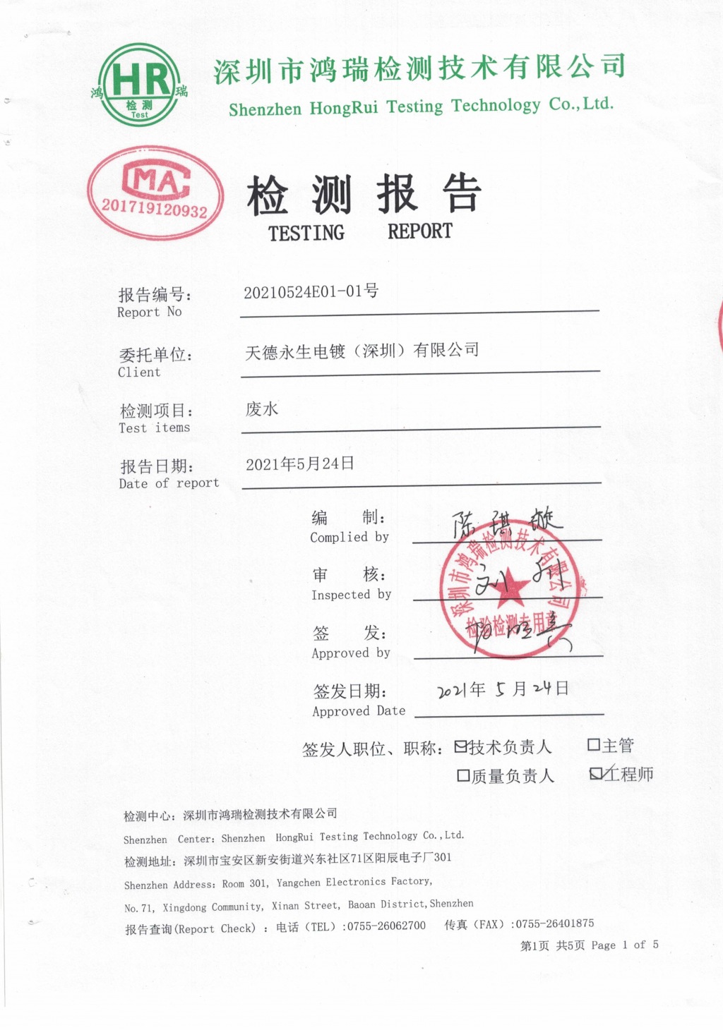 天德永生电镀(深圳)有限公司