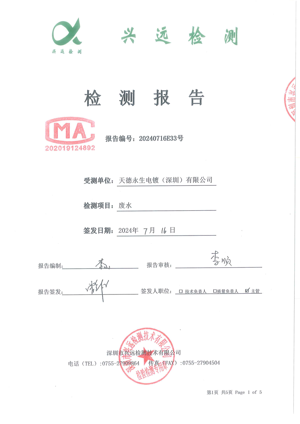 天德永生电镀(深圳)有限公司